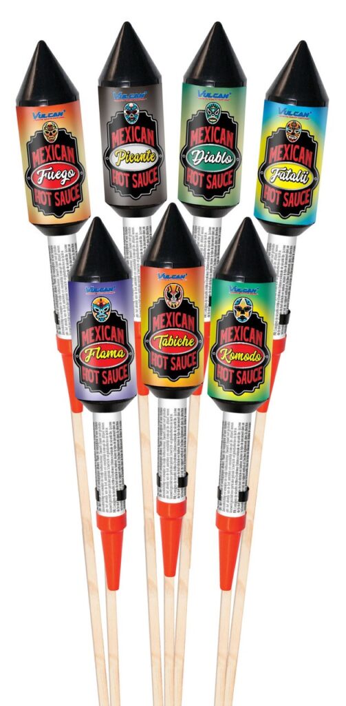 7- delig vuurpijlen assortiment met een bijzonder smaakvol en pittig design. Chili Con Bang Rocket assortment Goedkoop vuurwerk kopen bij Vuurwerkwinkel Goes